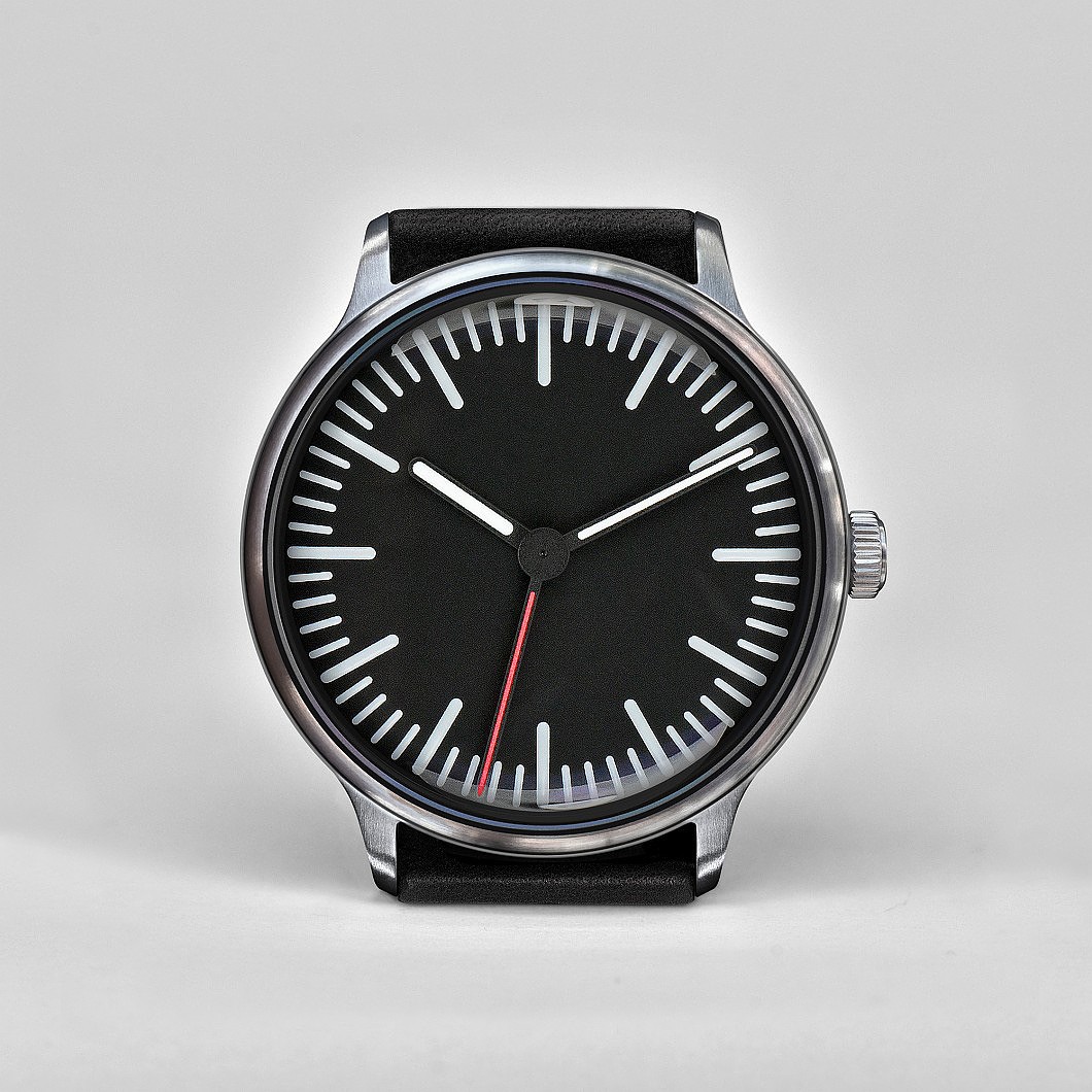 The Eins 2009 Limited Edition is the only minimalist one-hand watch that will turn heads. Its fully fluorescent, puristic dial and the singular skeleton hand make a unique statement – one that says you live at your own pace. On the Defakto Eins, time is read in intervals rather than moments, as the indexes represent only the hour and quarter-hour periods. The large single hand is simultaneously used to read both the hour and approximate minute.